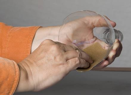 Lixe toda a superfície interna do funil, até que ela fique áspera e fosca. Essa parte da garrafa será a tampa da "mosquitérica"